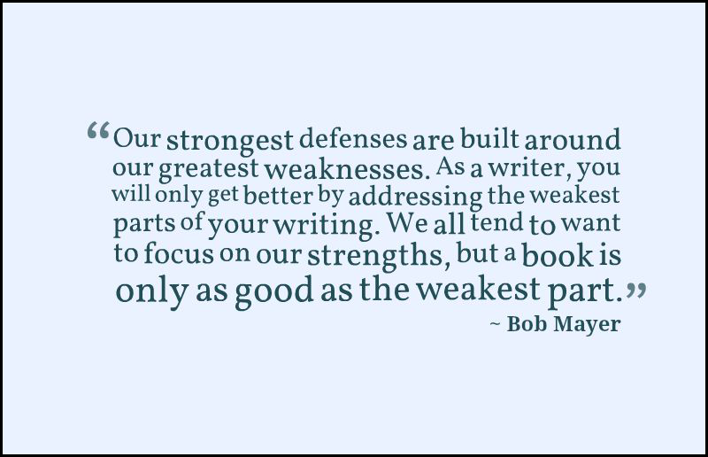 Tagged with: become a better writer, Bob Mayer quote, strengths in writing, weaknesses in writing, writing quotes, writing truths
