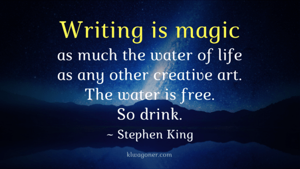 Writing is magic, as much the water of life as any other creative art. The water is free. So drink. ~ Stephen King