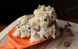 Here’s a recipe for one of the yummiest inventions ever. Without eggs (that potentially cause stomach problems when eaten raw), edible cookie dough can be considered a health food. If you don’t want an entire batch of sugary goodness hanging around in your frig screaming for attention, try this recipe that feeds just two culinary wanderers.