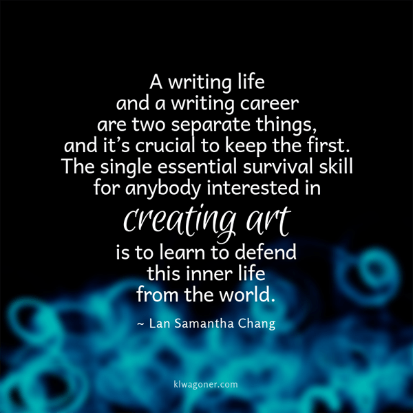 A writing life and a writing career are two separate things, and it’s crucial to keep the first. The single essential survival skill for anybody interested in creating art is to learn to defend this inner life from the world. ~ Lan Samantha Chang