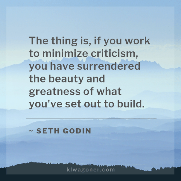 The thing is, if you work to minimize criticism, you have surrendered the beauty and greatness of what you’ve set out to build. ~ Seth Godin