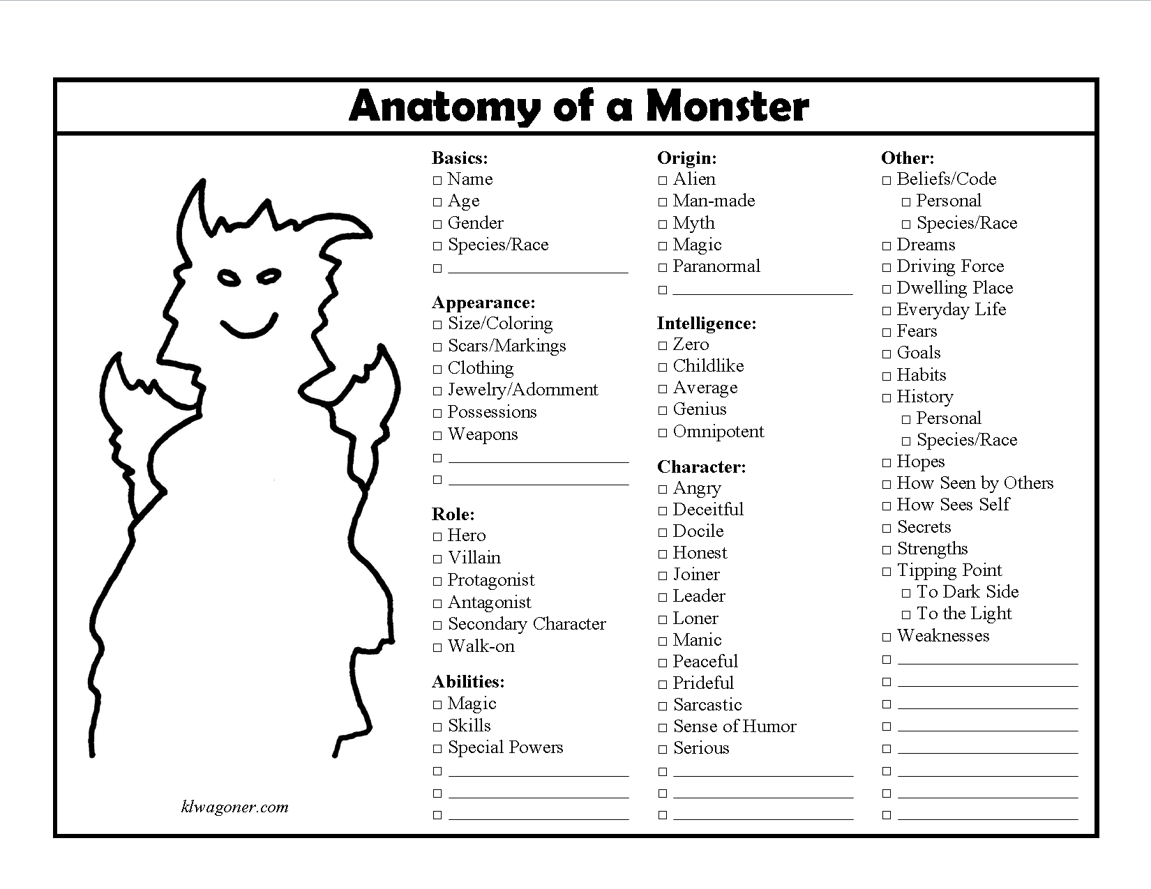 ♦ Use Anatomy of a Monster spreadsheet to help create monster characters. Click HERE for the pdf version.